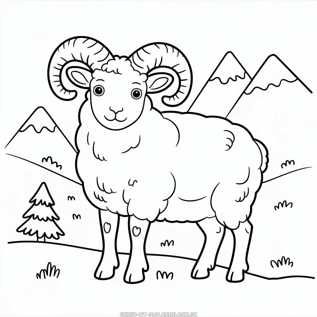 Gratis målarbild med Dallfår, ett sött får som fångar naturens skönhet. Skriv ut och färglägg denna teckning med Dallfår för barn. Högkvalitativ PNG-bild i svartvitt, optimerad för utskrift som A4-PDF.