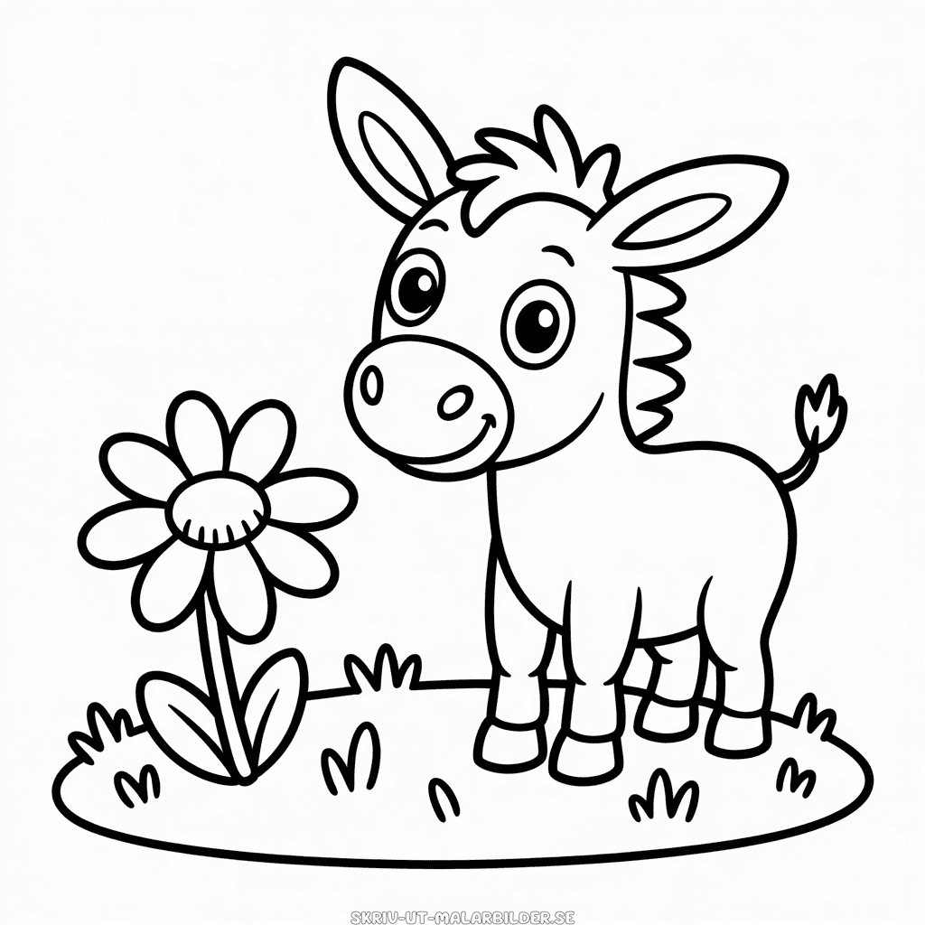 Gratis målarbild med Enkel Åsna, en charmig teckning av en glad och vänlig åsna lämplig för barn i alla åldrar. Skriv ut och färglägg denna teckning med en enkel åsna för barn. Högkvalitativ PNG-bild i svartvitt, optimerad för utskrift som A4-PDF.